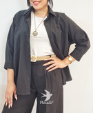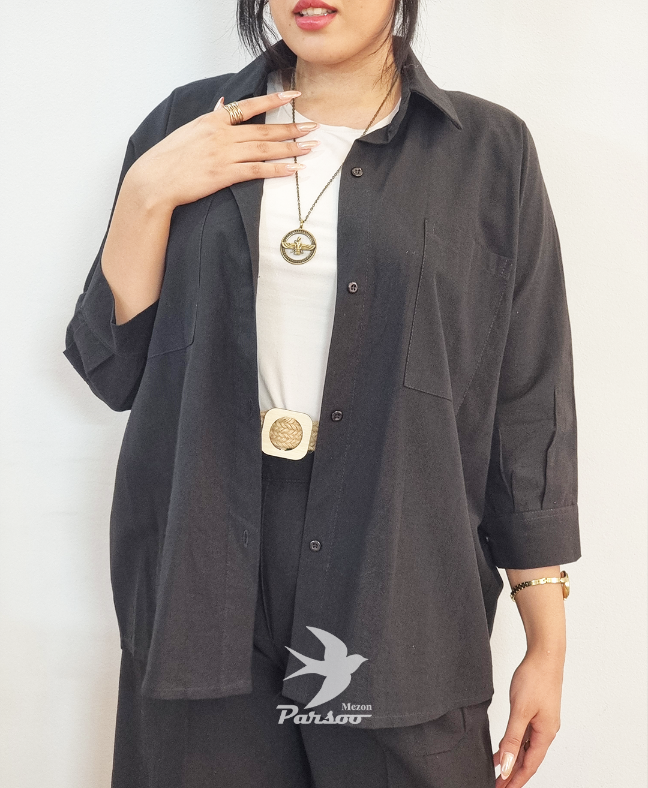 شومیز زنانه اسلپ ZARA لینن – فیت اورسایز، آستین سهربع و دوجیب، سبک و خنک