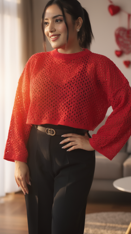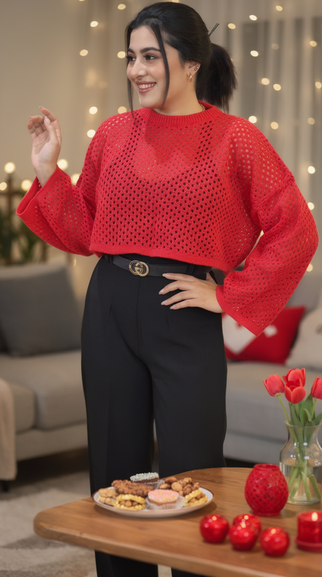 طراحی کراپشده و رنگ قرمز اصیل، این مدل رو تبدیل میکنه به یه انتخاب فوقالعاده برای استایلهای زمستونی و مهمونیها. بافت کاملاً تمیز، لطیف و سبک با **نخ اکریل مرغوب** تهیه شده و برای سایزهای **38 تا 46** کاملاً راحته.