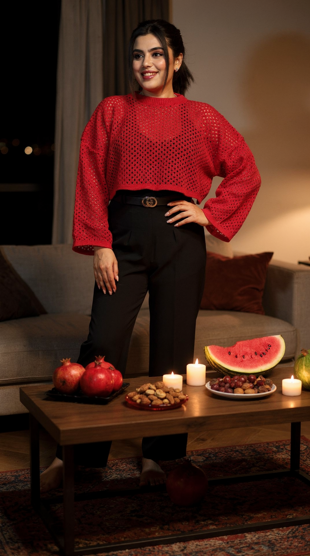 طراحی کراپشده و رنگ قرمز اصیل، این مدل رو تبدیل میکنه به یه انتخاب فوقالعاده برای استایلهای زمستونی و مهمونیها. بافت کاملاً تمیز، لطیف و سبک با **نخ اکریل مرغوب** تهیه شده و برای سایزهای **38 تا 46** کاملاً راحته.