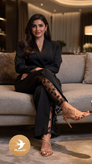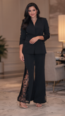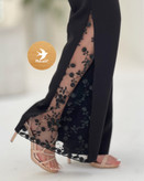 شلوار زنانه کنار گیپور مشکی | کرپ مازراتی شیک