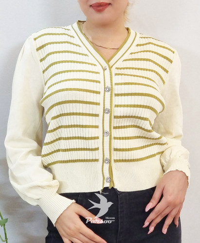بلوز دورس بافت زنانه پاییزی وارداتی ترک – فریسایز، طرح راه راه با کیفیت بالا