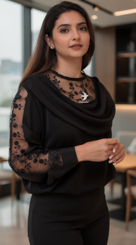 شلوار زنانه کنار گیپور مشکی | کرپ مازراتی شیک