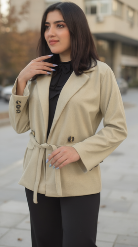 کت و شلوار زنانه شانتون دیپلمات لمه – کت کراپ کمردار سگکدار و شلوار سایزبندی ۳۸ تا ۴۶