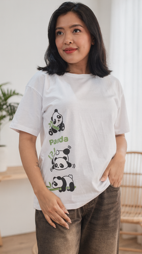 تیشرت زنانه تابستانی پنبه سوپر با طرح پاندا – تک سایز ۴۰ تا ۴۶، خنک و راحت