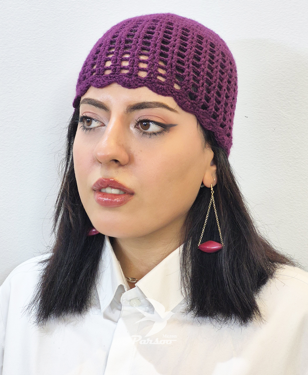 کلاه لئونی دستبافت زنانه بنفش رنگ با کاموای درجه یک – مدل زمستانی شیک و خاص