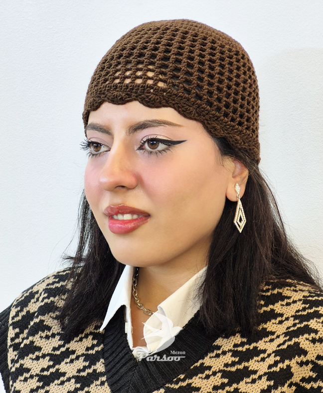 ناموجودکلاه لئونی دستبافت زنانه قهوه ای رنگ با کاموای درجه یک – مدل زمستانی شیک و خاص کپی